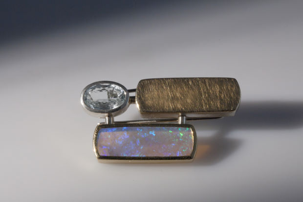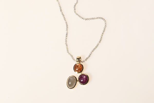 Anhänger: Gold Silber Rubin Sonnenstein Mondstein
